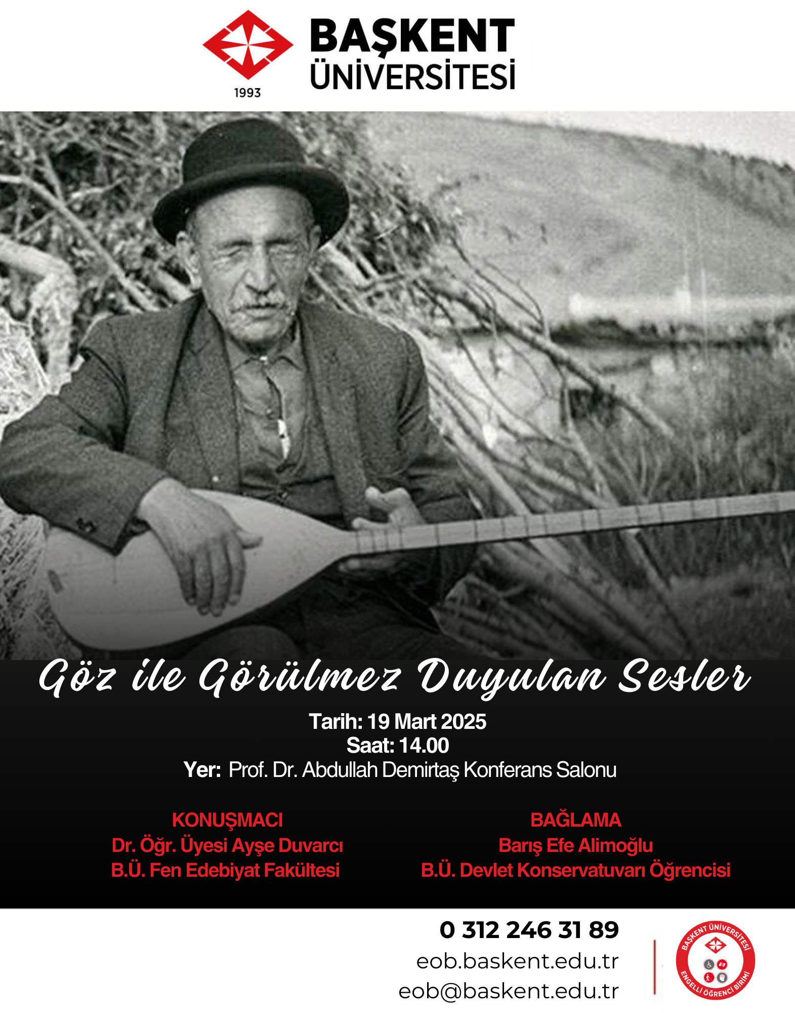 Aşık Veysel'i anma günü sebebiyle "Göz ile Görülmez Duyulan Sesler" etkinliği 19 Mart 2025 tarihinde saat 12:00'da Prof. Dr. Abdullah Demirtaş Konferans Salonu gerçekleşecektir.