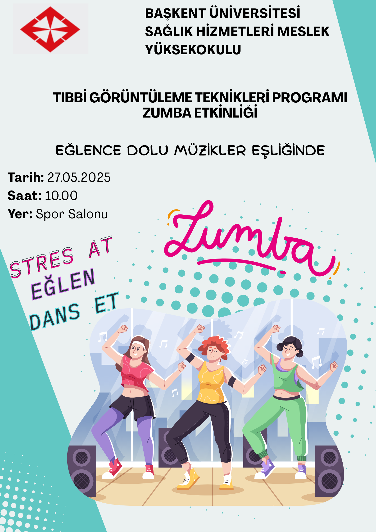 Yüksekokulumuz, Tıbbi Görüntüleme Teknikleri Programı öğrencilerinin 27 Mayıs 2025 tarihinde saat 10.00 'da Başkent Üniversitesi Spor Salonunda Zumba Etkinliği gerçekleştirecektir. Katılımlarınızı bekleriz.