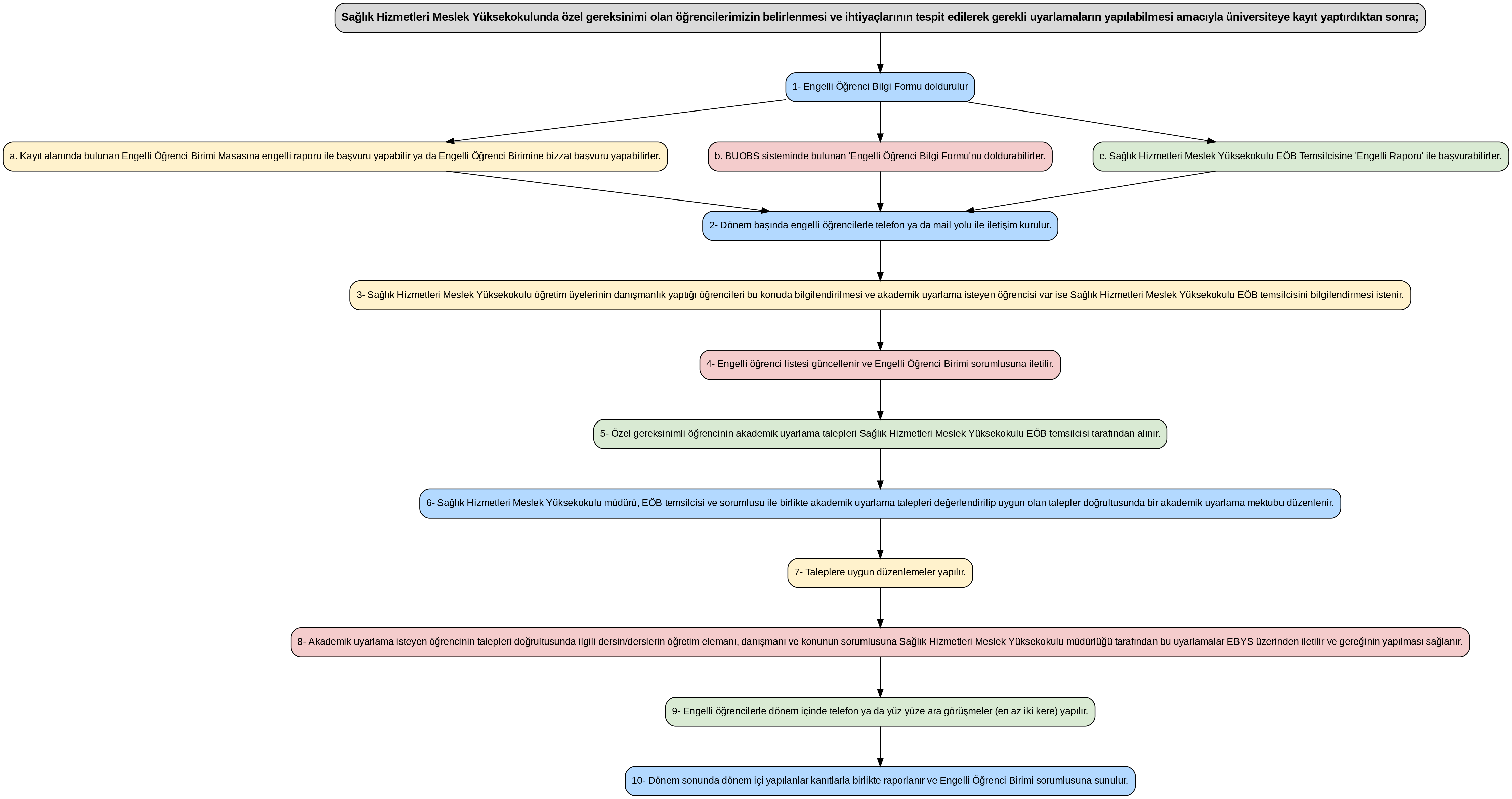 Sağlık Hizmetleri Meslek Yüksekokulu Engelli Öğrenci başvuru süreci şeması için lütfen